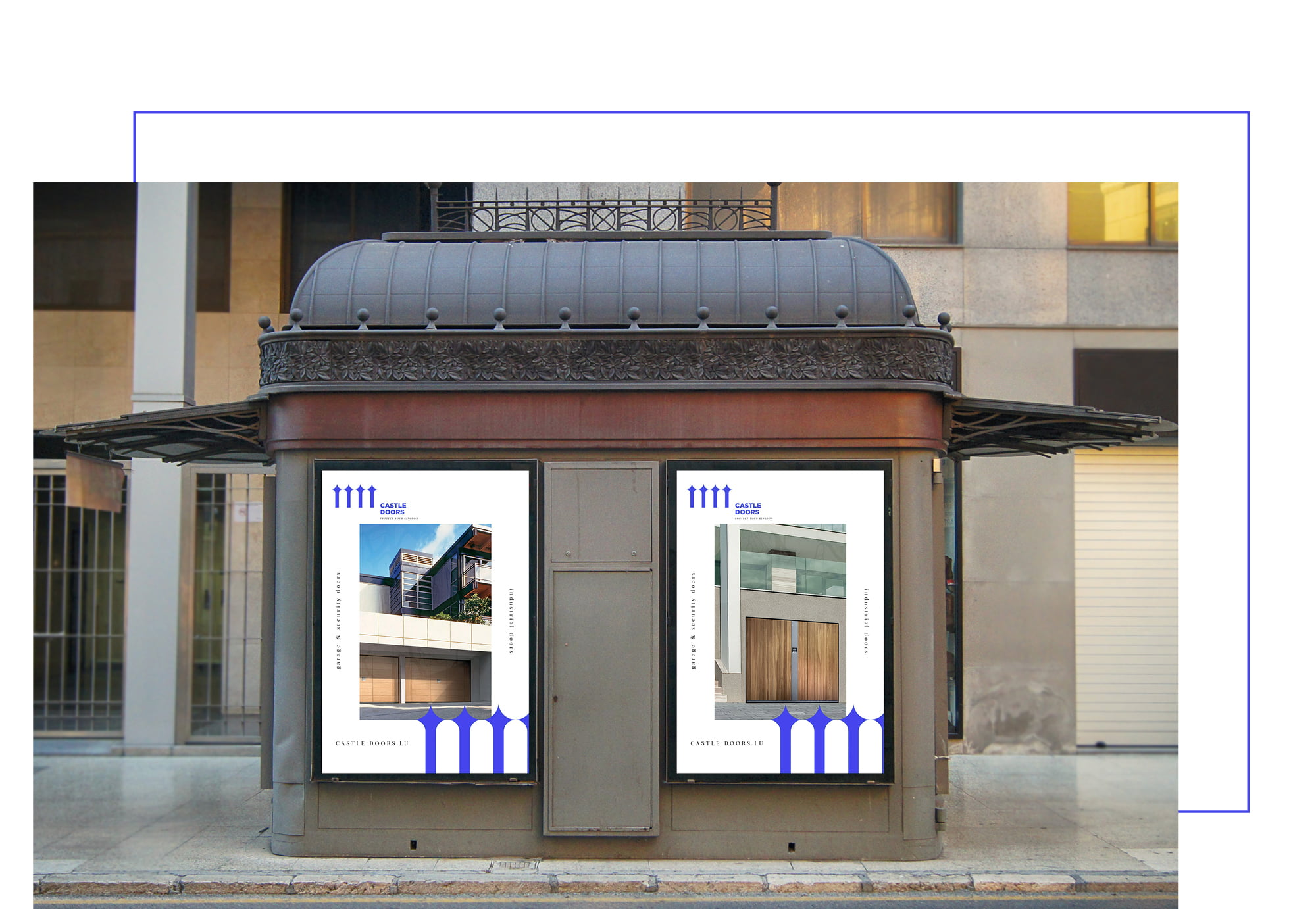 Dans le cadre du projet Castle Doors, Takaneo a d’abord pris en charge la création du nom de marque. Le nom a été choisi pour refléter la robustesse, l’élégance et la sécurité des portes de garage sécurisées ou des portes blindées. La baseline a renforcé cet axe en soulignant les valeurs de qualité et de protection associées à la marque.