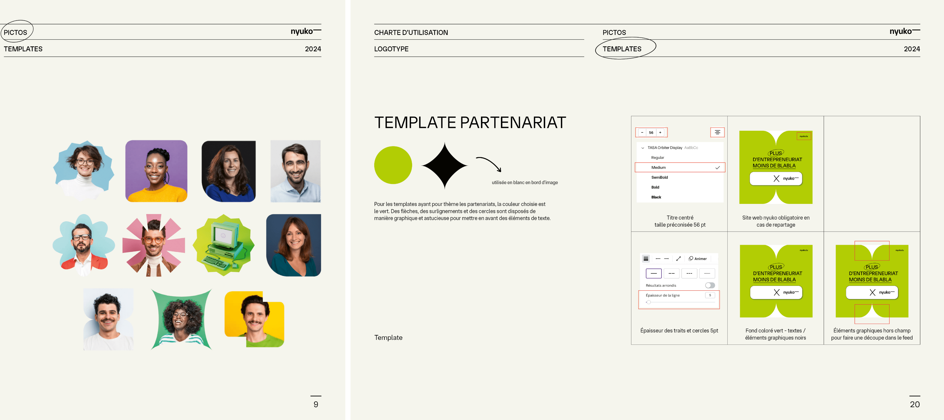 Enfin, Nyuko, comme le prône son activité, avait pour volonté d’être autonome dans sa communication et ce, sur tous les fronts. Dans ce contexte, nous avons réalisé de nombreux modèles et supports de communication pour leurs réseaux sociaux leur permettant cette autonomie.